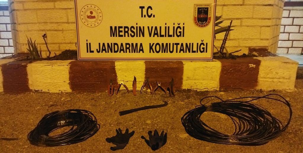Mersin‘in Silifke ilçesinde kablo hırsızlığı iddiasıyla yakalanan 2 zanlıdan biri tutuklandı.