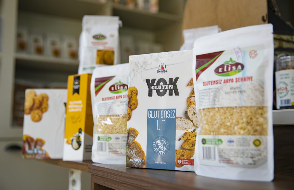 Glütensiz Kafe & Market’te Şube Müdürü olarak görev yapan Ceyhun Mavruk; kendi yemeklerini evde hazırlamak isteyen Çölyak ve Glüten hastalarının yemek yapabilecekleri tüm glütensiz ürünlerin, bu işletmede satışa sunulduğunu belirtti. İşletmede hamur işlerinden soğuk zincir paketli gıdalara, sağlıklı atıştırmalıklardan tatlılara kadar çok geniş bir yelpazede ürün bulunduğunu kaydeden Mavruk, “Şubemizde; içli köfte, lahmacun, hamburger, pizza gibi sevilen yemeklerin sıcak servisini de yapmaktayız. Market raflarımızda ise; un, makarna, tel şehriye, çikolata, kurabiye, sağlıklı atıştırmalıklar ve kuru ürünler yer almaktadır. Glüten problemi yaşayan kişiler, sınırlı imkânları bulunmasından dolayı dışarıda zaman geçirecek çok fazla seçenek bulamıyorlar. Bu ihtiyaçlarını şubemize gelerek giderebilir; yemeklerini yiyip kahvelerini içerek burada keyifli vakit geçirebilirler” şeklinde konuştu.